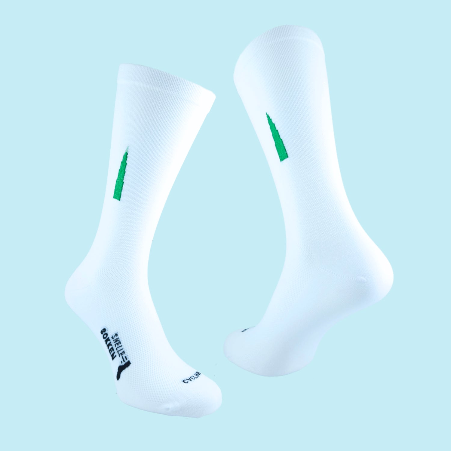 Ontdek de witte hoge fietssokken met Martinitoren-borduursel van Snelle Sokken – waar stijl, comfort en trots samenkomen. Deze sokken zijn gemaakt voor fietsers die niet alleen van snelheid houden, maar ook van hun stad. Met de iconische Martinitoren subtiel op de enkel geborduurd, trap je elke rit met een stukje Groningen aan je voeten.