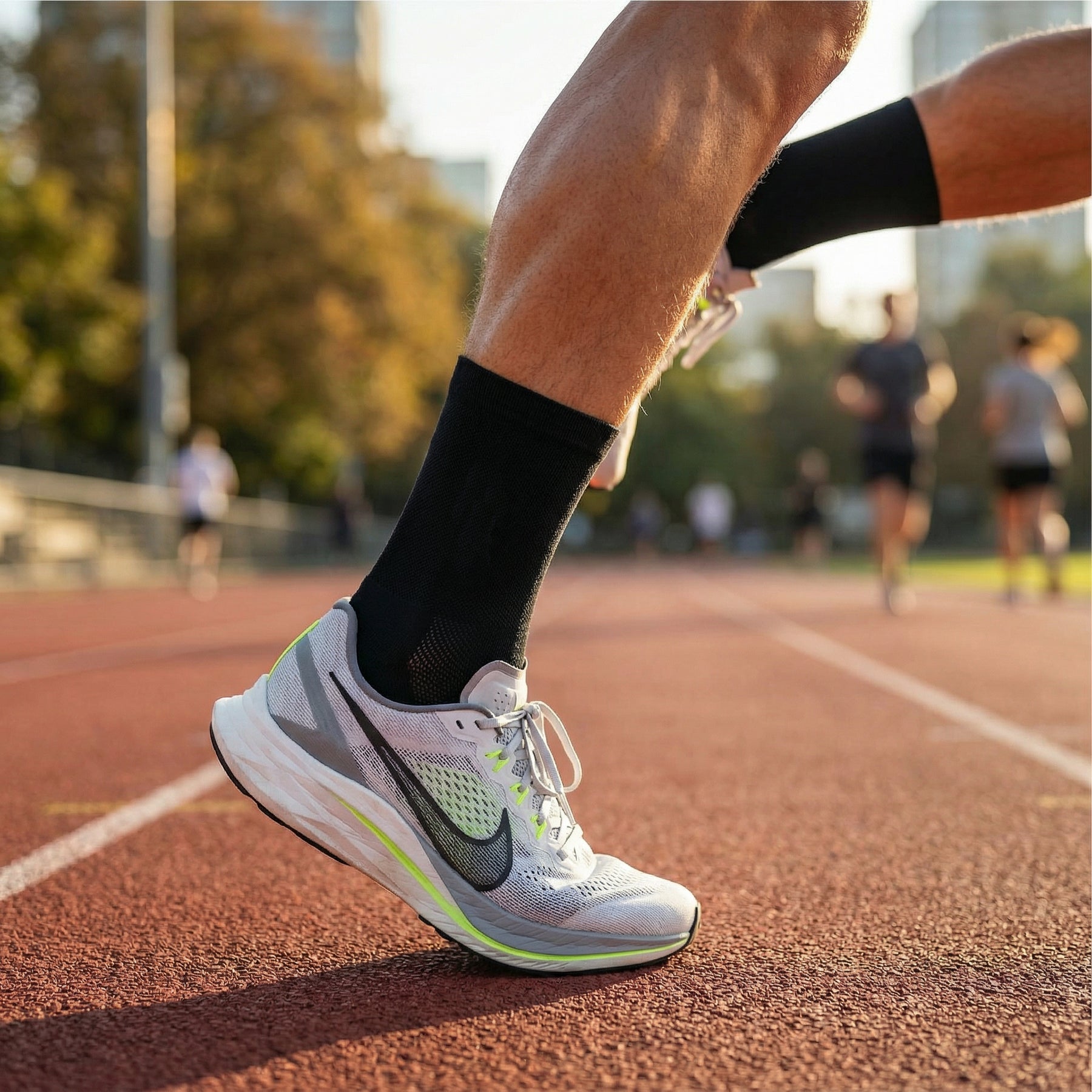 Hoge zwarte hardloopsokken van Nylon. Onze 3-pack zwarte hardloopsokken is de perfecte basis voor elke loper. Ultralicht, blaarpreventief en geproduceerd in Europa met premium nylon – klaar voor elke training.