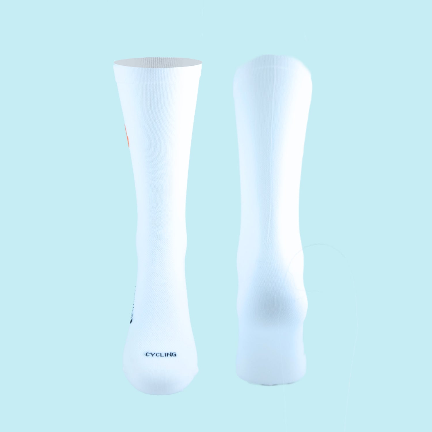 Onze hoge fietssokken zijn gemaakt van hoogwaardig nylon met een ademend mesh panel aan de bovenkant van de voet. Rond de enkel en het onderbeen zorgt een lichte compressie voor extra ondersteuning tijdens het fietsen.