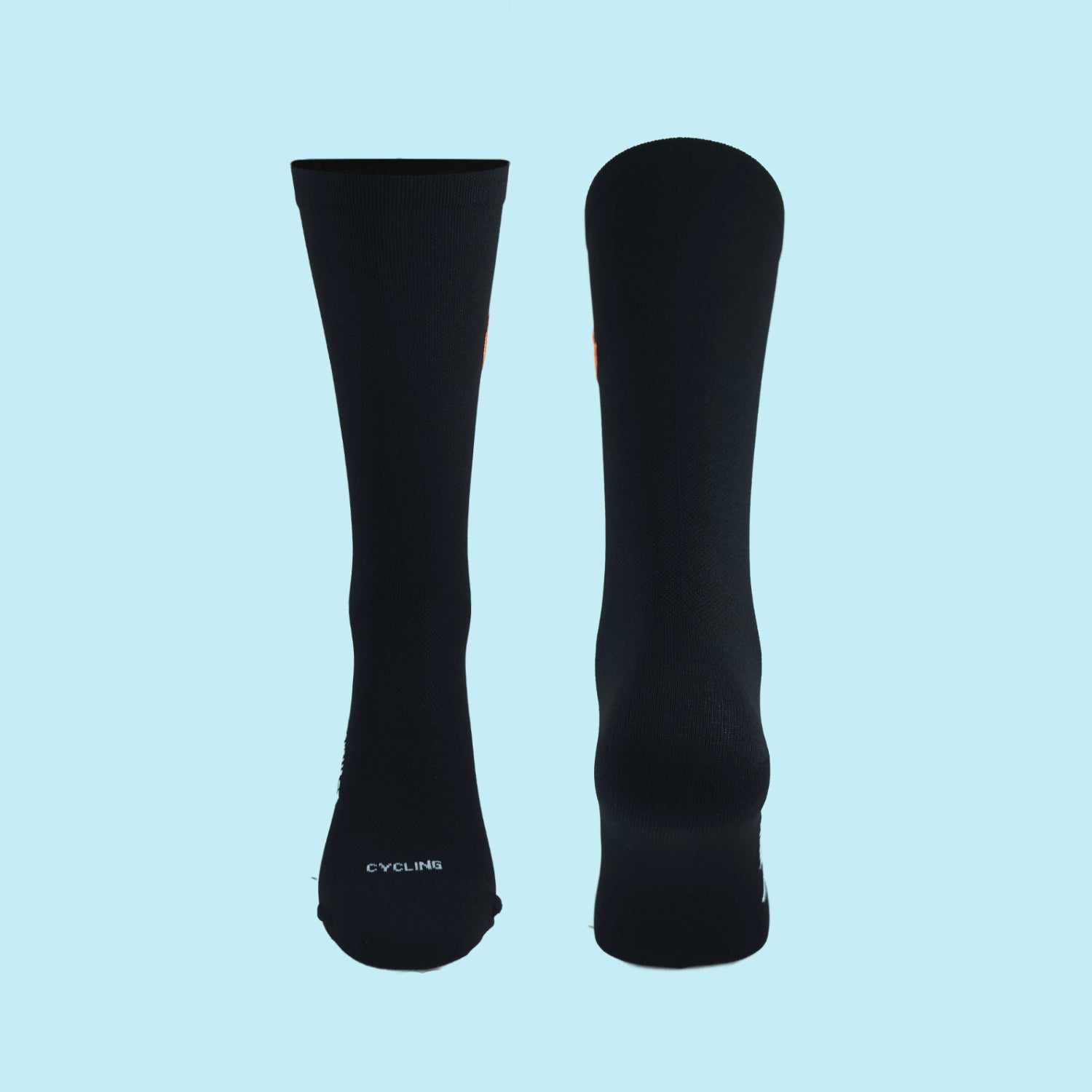 Onze hoge fietssokken zijn gemaakt van hoogwaardig nylon met een ademend mesh panel aan de bovenkant van de voet. Rond de enkel en het onderbeen zorgt een lichte compressie voor extra ondersteuning tijdens het fietsen.