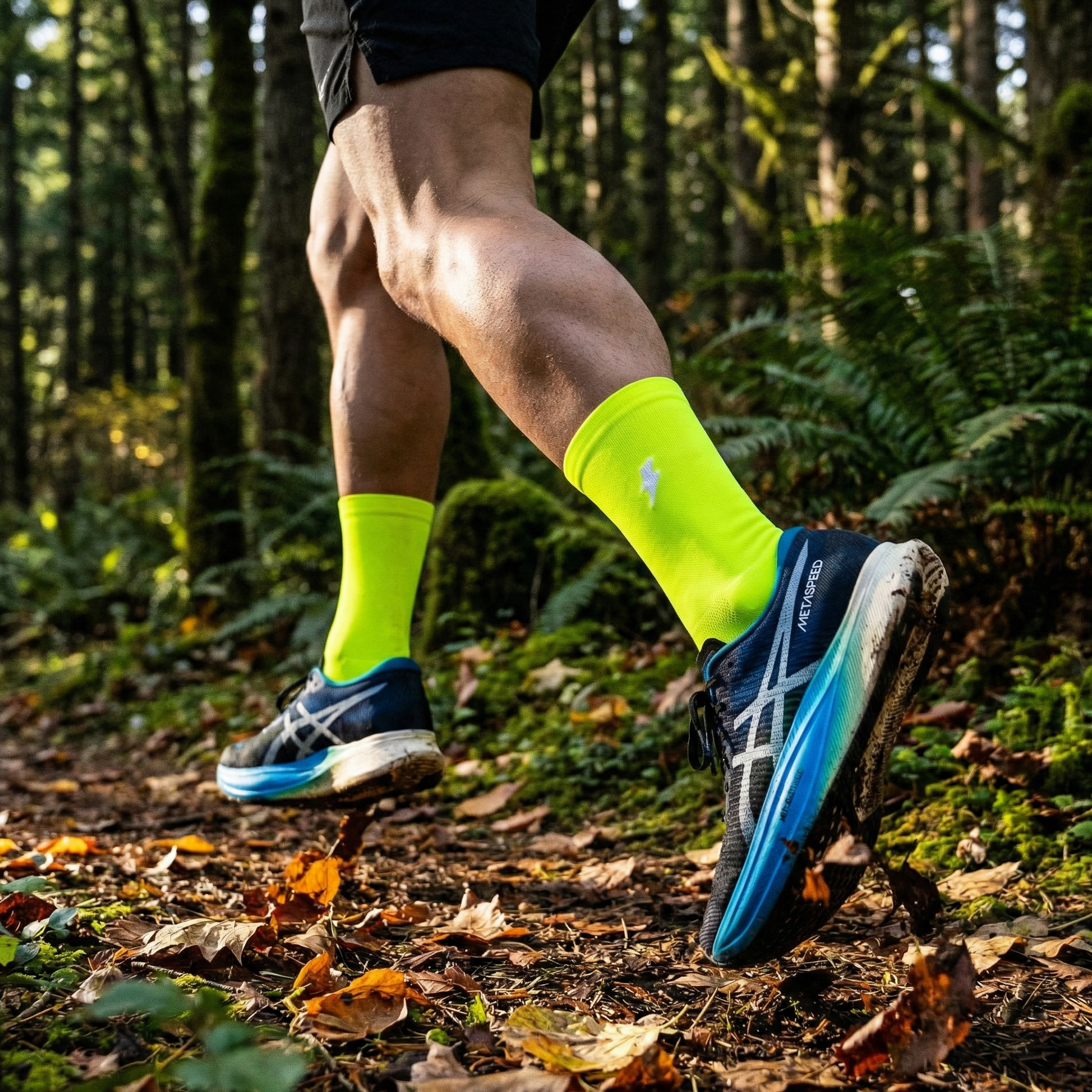 Geef je run een energieboost met deze Neon hardloopsokken voorzien van een uniek bliksem-design. In tegenstelling tot standaard prints, is de bliksem op deze sok hoogwaardig geborduurd. Dit zorgt voor een luxe uitstraling en een gaaf 3D-effect dat echt van de sok af spat.