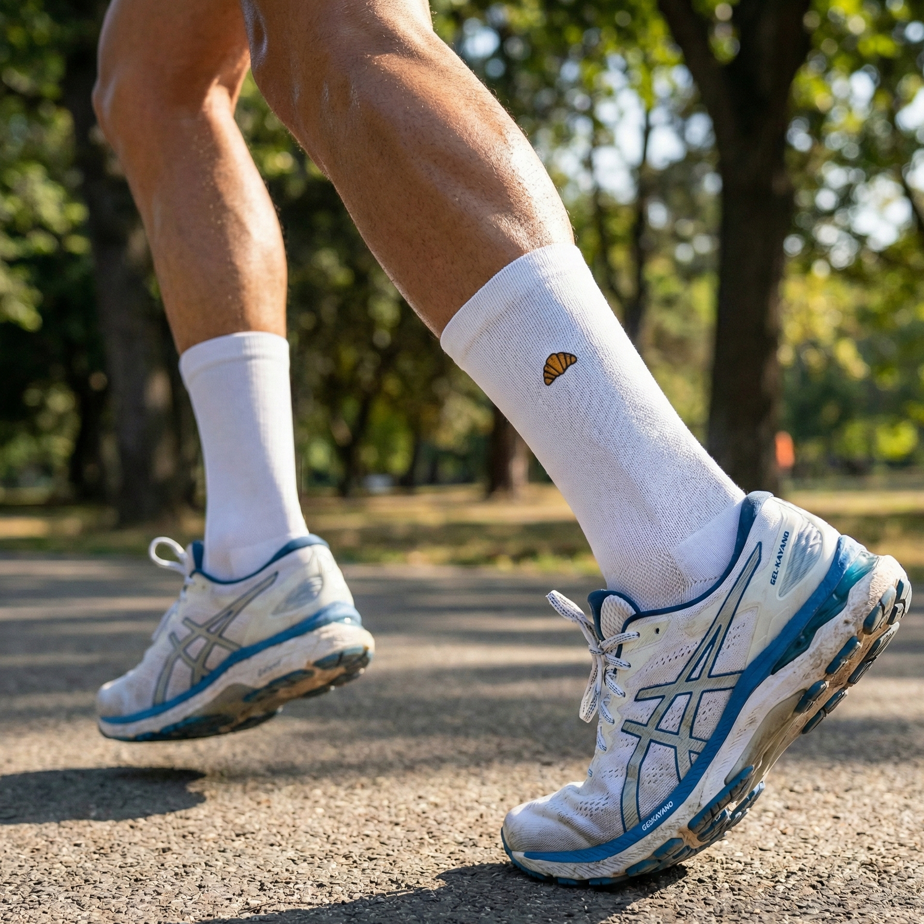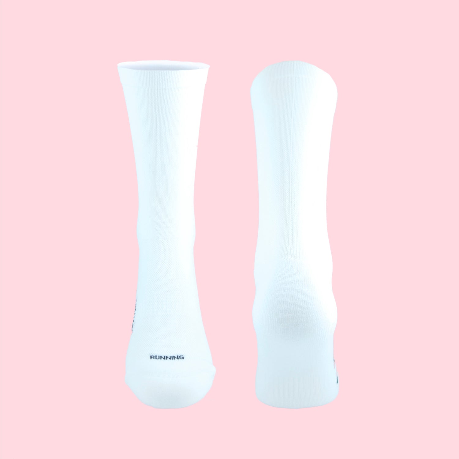 Deze middelhoge sokken combineren deze look met serieuze prestaties. Ze zijn gemaakt van duurzaam nylon en voorzien van een extra dik voetbed, wat zorgt voor fijne demping bij elke landing. Dankzij de stevige elastische band rond de middenvoet blijft de sok tijdens het rennen perfect op zijn plek zitten zonder te schuiven. Topkwaliteit, geproduceerd in Europa.