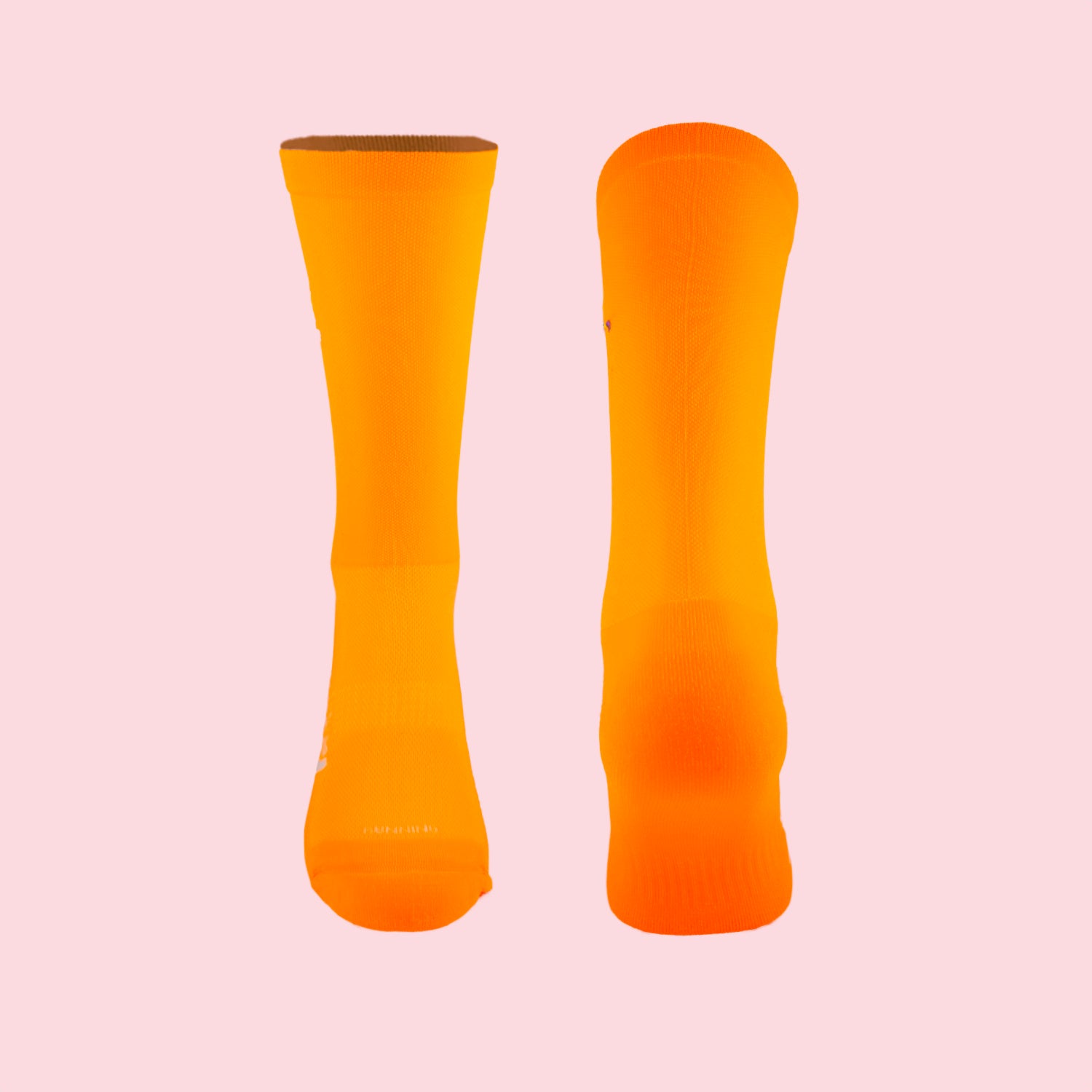 Val op en ga voor kwaliteit met deze Neon Oranje hardloopsokken. In plaats van een standaard print, zijn deze sokken voorzien van een subtiel geborduurd hardlopertje op de schacht. Dit borduursel ligt mooi op de stof en geeft een luxe 3D-effect dat jouw hardloopoutfit net dat beetje extra geeft.