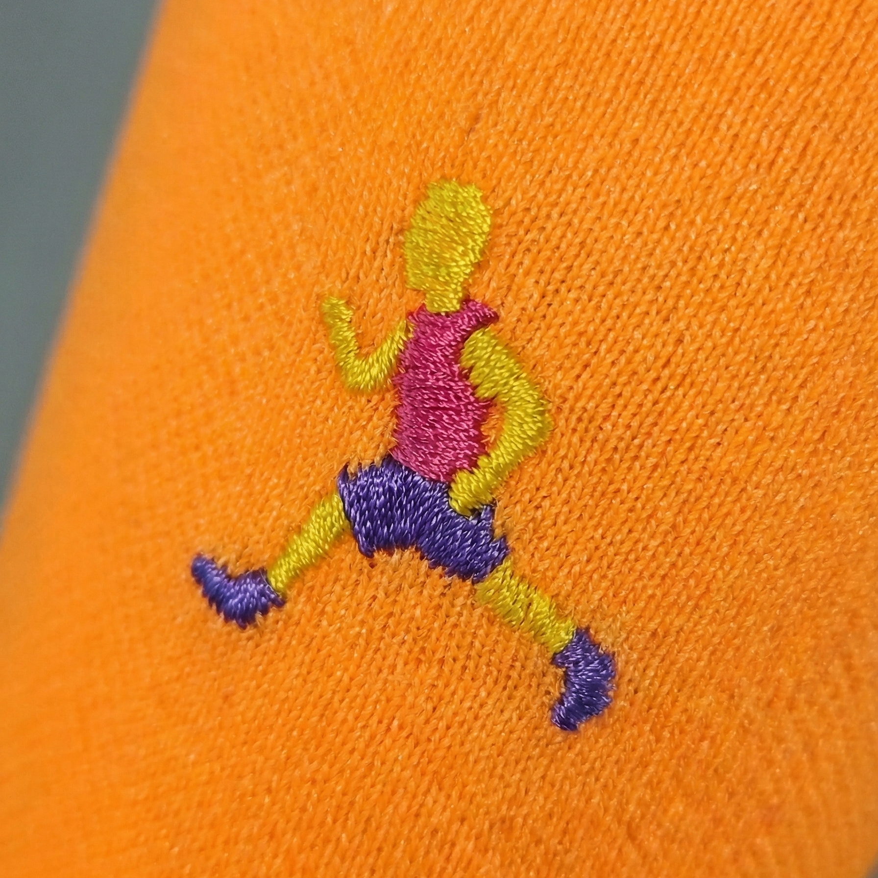 Design: Neon Oranje met geborduurd hardloop-icoon (3D-effect).