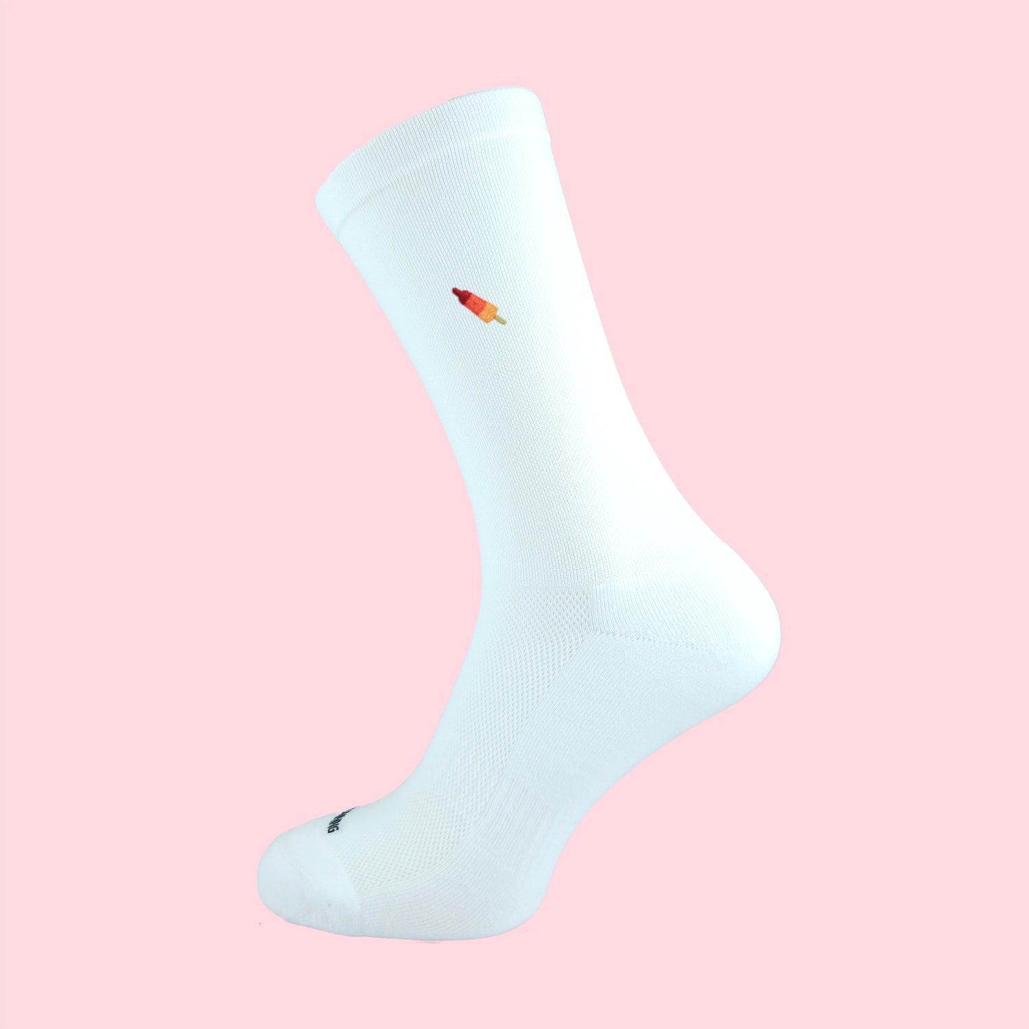 Houd je hoofd koel en je voeten snel met deze frisse witte hardloopsokken. In plaats van een gladde print, zijn deze sokken voorzien van een speels geborduurd ijsje op de schacht. Dit gedetailleerde borduursel ligt mooi bovenop de stof, wat zorgt voor een luxe 3D-effect waarmee je zeker de aandacht trekt.
