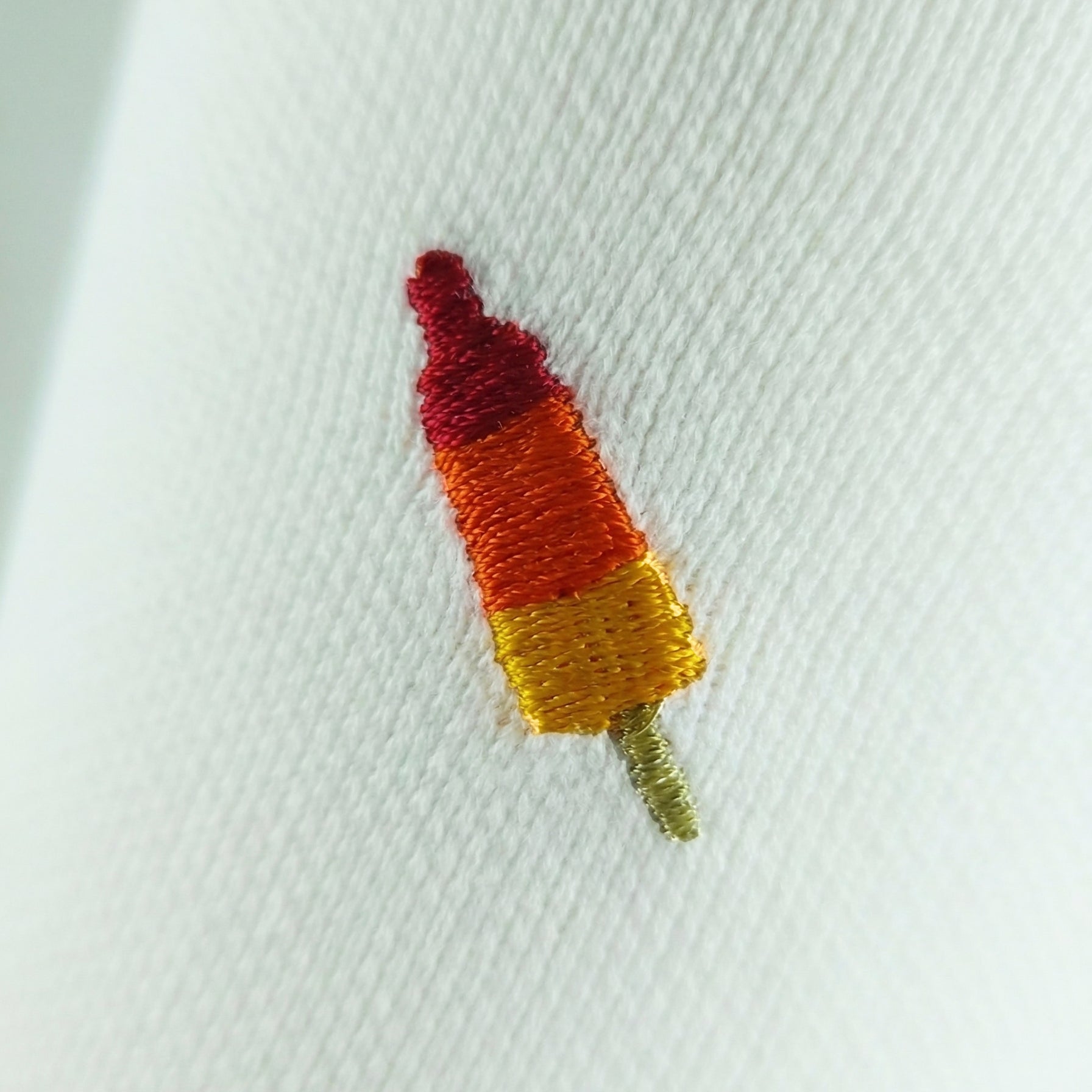 Design: Wit met geborduurd ijsje (verfijnd 3D-effect).
